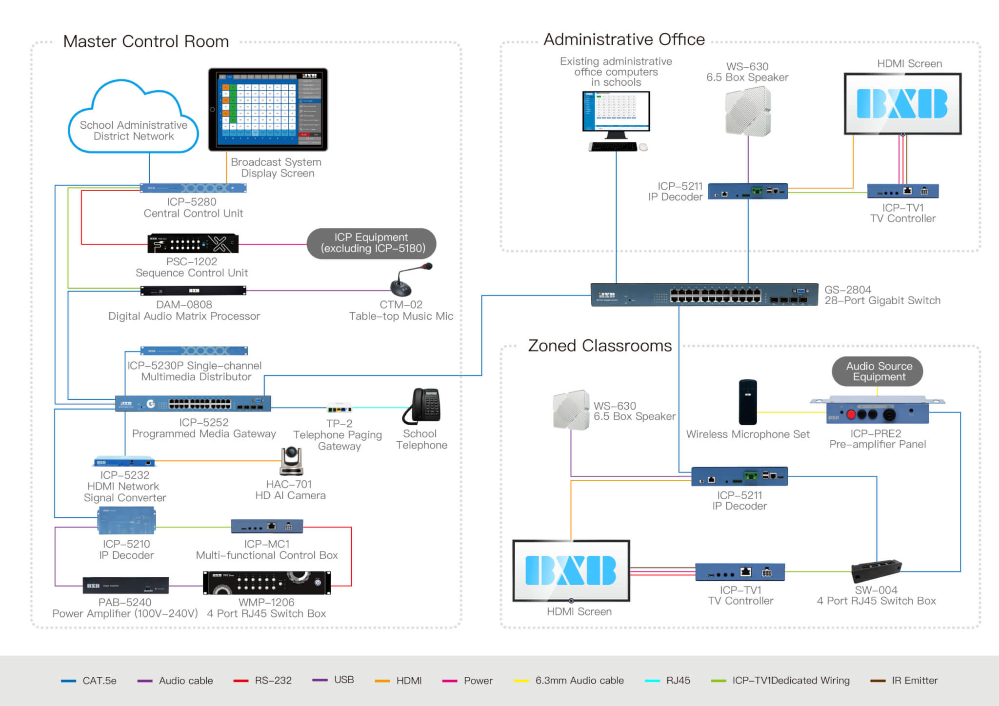 The BXB ICP-5200 IP-based Multimedia PA System was born to meet this demand. The system integrates IoT, big data, audiovisual streaming, and cloud technology, supporting high-quality video and clear audio streaming with low latency and synchronized playback. Whether in smart campuses, department stores, factories, airports, stations, hotels, communities, or emergency response command centers, the ICP-5200 provides an instant, reliable, and efficient broadcast solution.